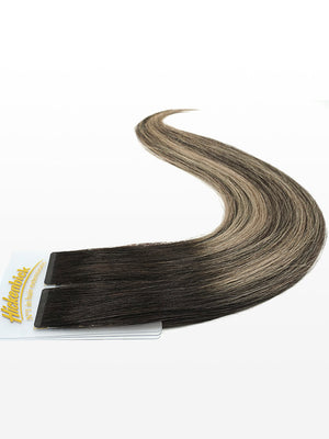 Slim Tape Extensions - luxury European / Russian Hair - 50cm - B2/60 balayage dunkelbraun & aschblond
