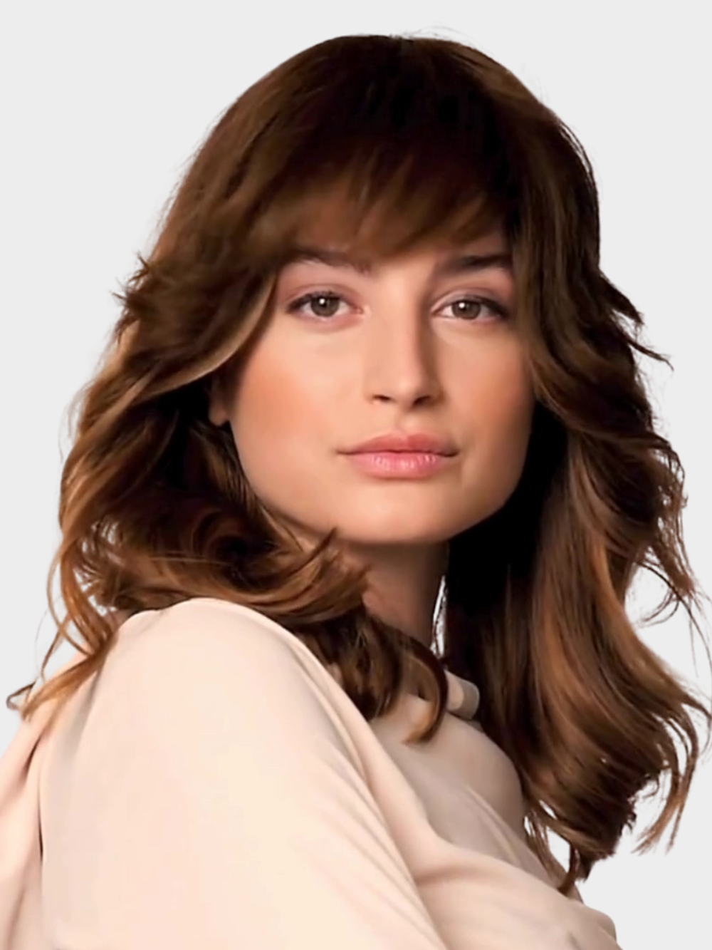 Echthaar Stirnfransen - Clip-In Pony - M8/26 gesträhnt haselnussbraun & Honig Goldblond